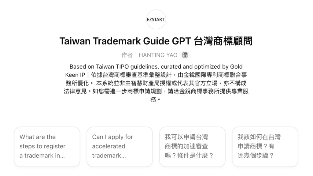 Taiwan Trademark Guide GPT 台灣商標顧問